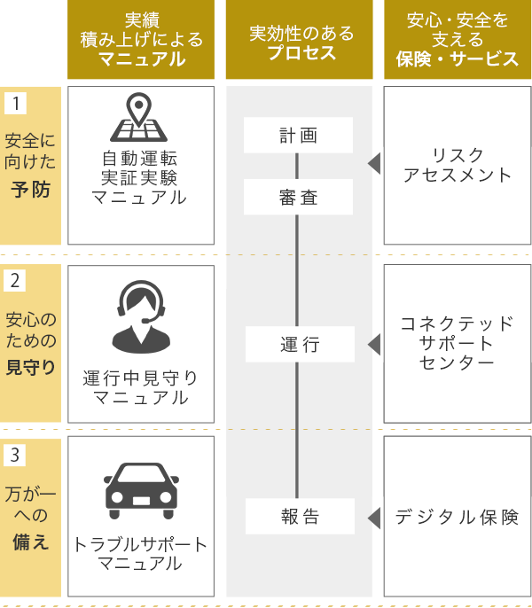 「事故の予防」に始まり「事故の見守り」から「事故の補償」に